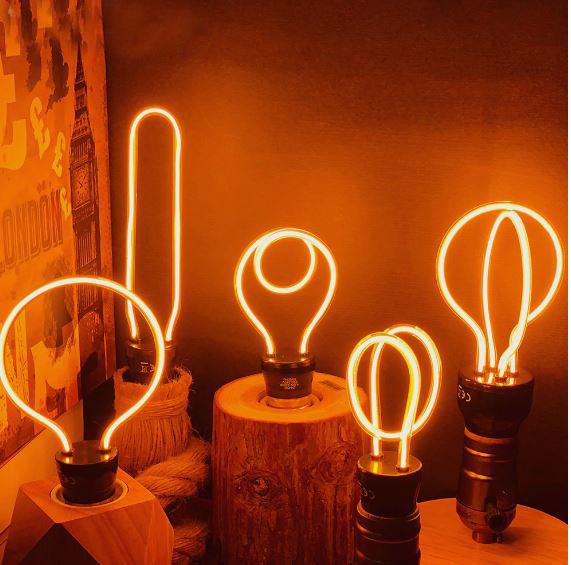 Весьма интересная лампочка, которая дополнит любой интерьер. Её фишка в том, что лампа не имеет стандартной стеклянной колбы. Вместо этого есть светодиодная трубка, которая придает разную форму лампе. На выбор представлено несколько вариантов. В наличии лампы мощностью: 4 и 8 Вт. Размер самой большой лампы в продаже 165 x 85 мм. Светит мягко, без резких теней, теплым светом 2700 K.