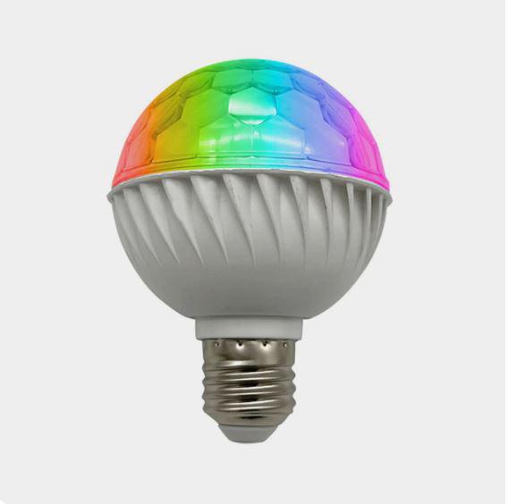 Оригинальная проекционная лампочка, которая специально создана для различных вечеринок. Её главная фишка в том, что она оснащена компактным мотором для вращения световых лучей, что в свою очередь обеспечат настоящий эффект калейдоскопа. Смотрится классно. Поможет создать нужное настроение для любой вечеринки. Цоколь стандартный E27. Размер: 11,1 x 8 см. Качество хорошее, доставка быстрая.