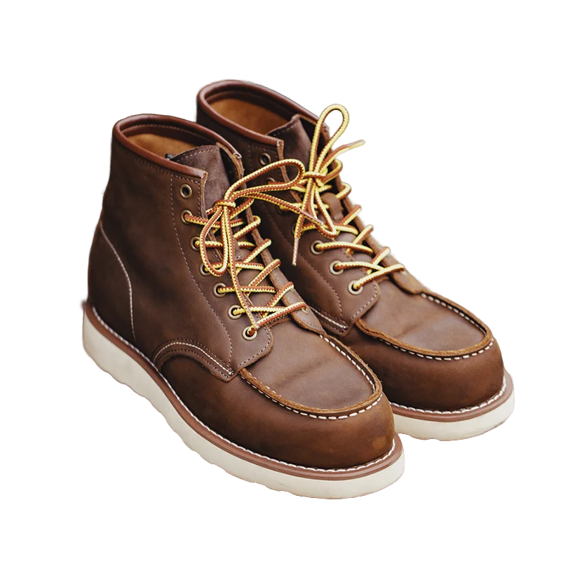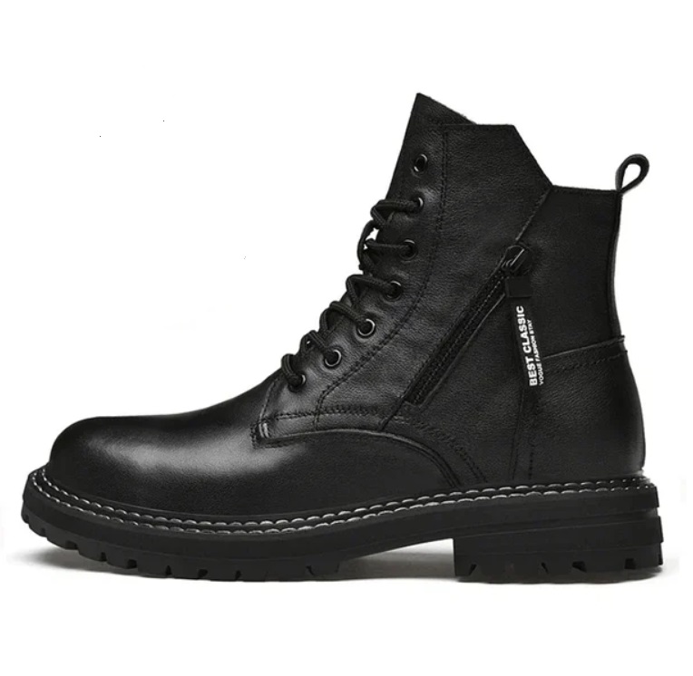 Верх из натуральной коровьей кожи сочетается с внутренней частью из канваса и съемной тканевой стелькой. Подошва у ботинок резиновая, оснащённая протекторами, которые обеспечивают защиту от скольжения.