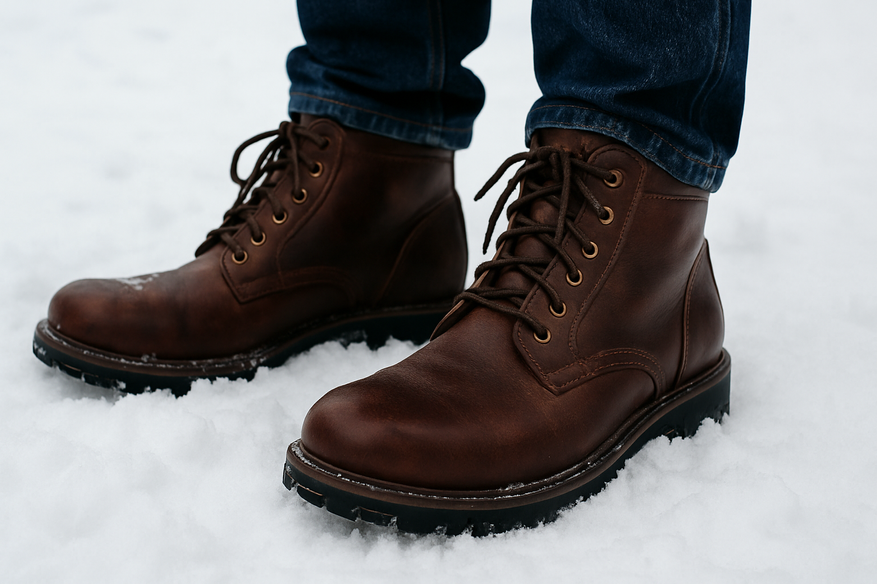 Эта пара зимних ботинок выдержит более низкую температуру, потому что утеплена шерстью.