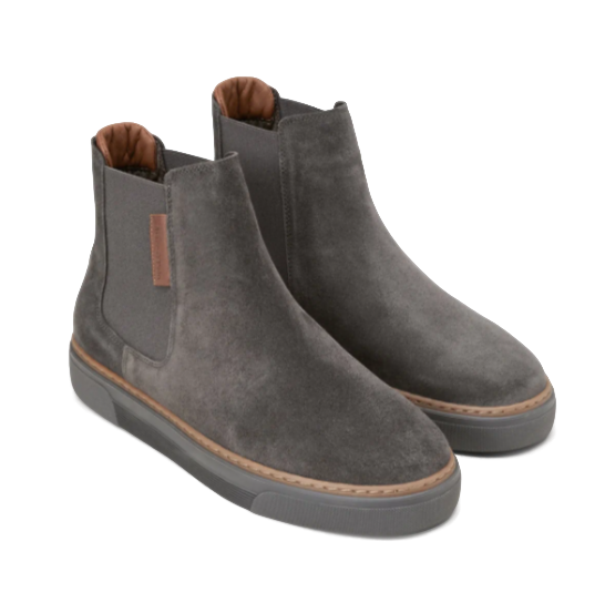 Верхняя часть комбинирует натуральную кожу и натуральный нубук. В качестве утеплителя использовался искусственный мех.