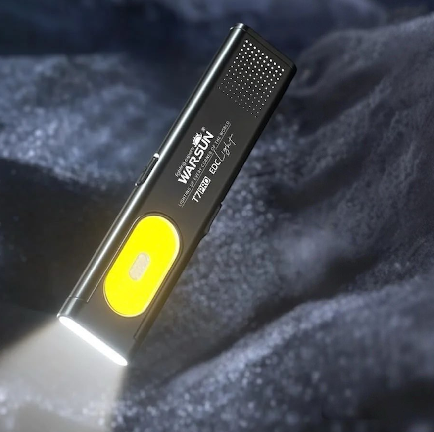 На фоне предыдущего Warsun T7, выглядит более простым и менее универсальным. Здесь три светодиода, мощность всего 3 Вт, корпус полностью из ABS-пластика, без металлических элементов. Зато есть заявленная влагозащита, чего у T7 нет. По свету он скромнее: режимов меньше, точных данных по люменам производитель не дает, дальность указана в тех же пределах 100-200 метров. Аккумулятор встроенный, перезаряжаемый, яркость регулируется в пределах 2-4 режимов, то есть без гибкости, которая была у Warsun. В итоге S01 — это легкий, базовый фонарик на каждый день, без запаса по мощности, тогда как T7 ощущался более функциональным за счет алюминиевого корпуса, большего числа режимов и более внятных характеристик по свету.