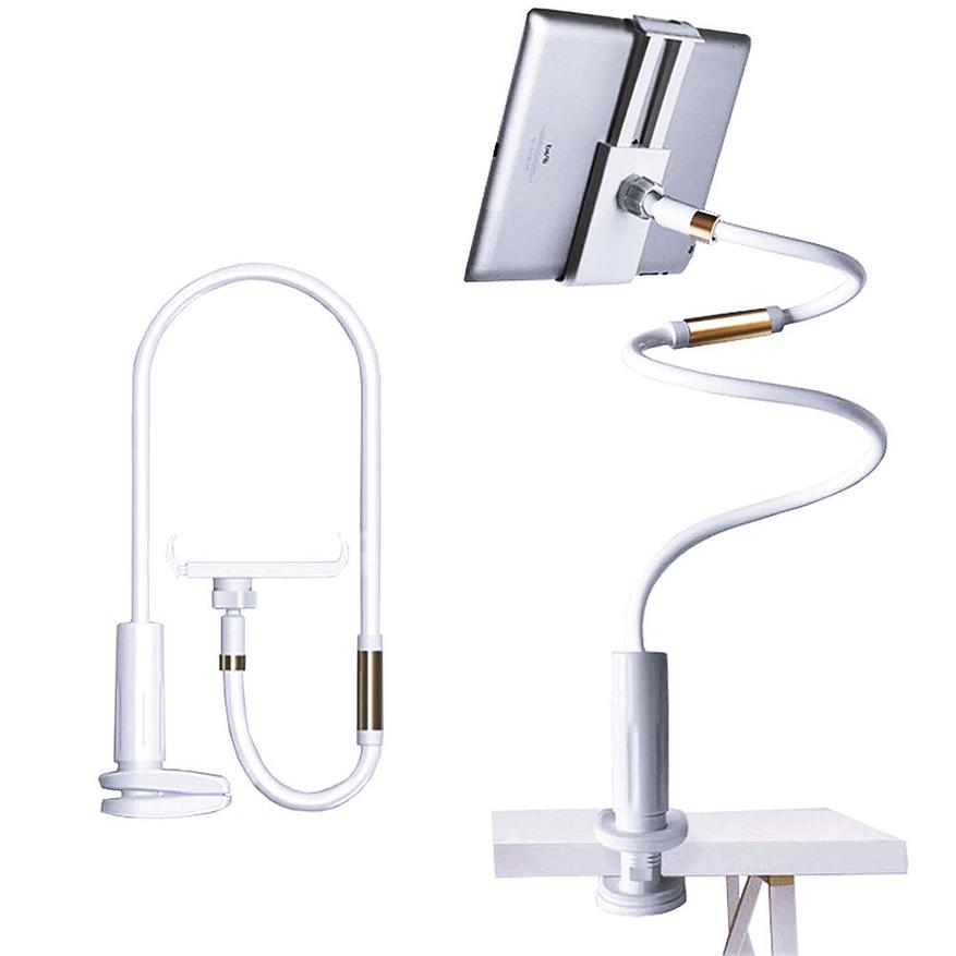 Интересный держатель для тех, кто любит посмотреть кино с комфортом, развалившись на диване или кровати. Удлиненный держатель с гибкой стойкой можно зафиксировать, например, на стенке кровати или подлокотнике дивана и освободить руки, которые сильно затекают, если долго держать в них планшет. Длина стойки от 100 до 130см, раздвижная каретка подходит для смартфонов и планшетов с диагональю до 11 дюймов.