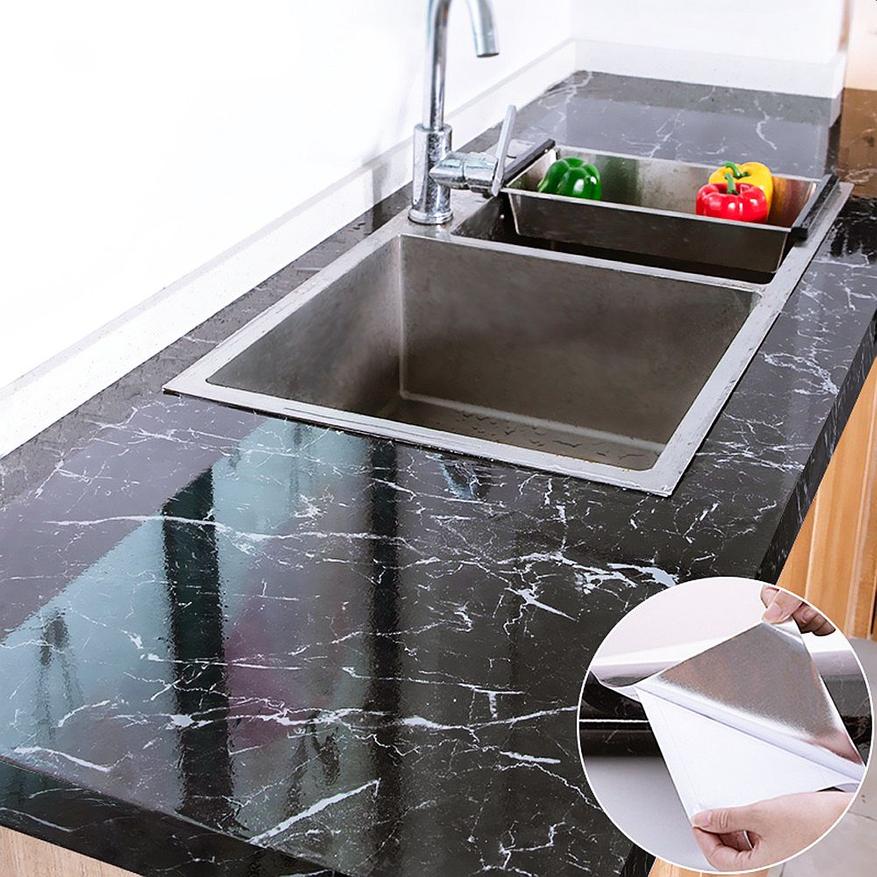 Специальная толстая самоклеящаяся пленка на алюминиевой основе для оклейки рабочих поверхностей, например, кухонного стола. Подойдет как для защиты, так и для освежения внешнего вида, т.к. пленка имеет рисунок имитирующий мрамор. Пленка влагонепроницаемая, отлично моется, имеет глянцевую внешнюю сторону. Есть в светлом и темном варианте исполнения. В отзывах некоторые декорируют даже дверцы кухонных ящиков. Размер 60x100см или 60x200см.