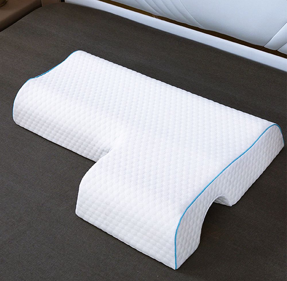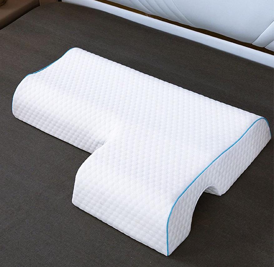 Необычная двойная подушка для тех, кто любит спать рядом со своей второй половинкой. Подушка имеет интересную форму, с выемкой для руки. Основа выполнена из вспененного материала с «эффектом памяти». Наволочка на молнии, можно снимать для стирки. На странице товара есть несколько разных вариантов как двойных, так и одинарных.