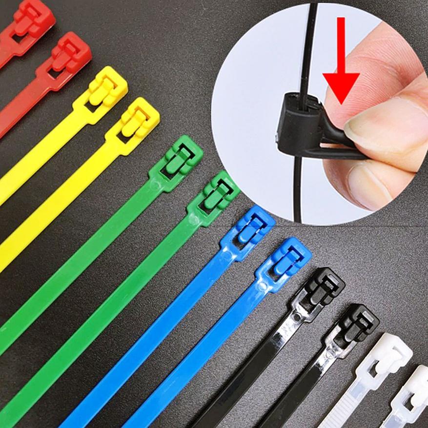 Все знают про нейлоновые стяжки, которые являются одним из полезнейших предметов для фиксации каких-либо предметов, например, проводов, а также временного ремонта (хотя, понятие временный относительно :) Обычные стяжки одноразовые и не позволяют использовать их многократно. Однако, есть вариант «многоразового использования» — каждая стяжка оснащена специальным язычком, который при необходимости можно нажать, снять стяжку и использовать ее повторно. На странице товара продается комплект из 100 штук с разными вариантами цвета на выбор. Длина 200мм.