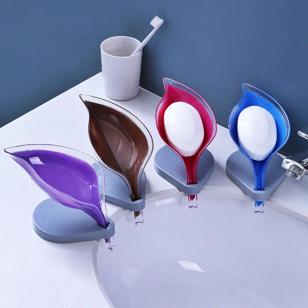 Креативная мыльница, выполненная в форме листа. Состоит из двух частей, нижняя крепится к раковине с помощью прозрачных присосок, верхняя часть, несмотря на свою необычную форму, весьма функциональна, т.к. «ножка листа» служит сливом для воды, что не даст мылу размягчится. Можно использовать не только в качестве мыльницы, но и как держатель, например, для мочалки. На странице товара есть разные расцветки.