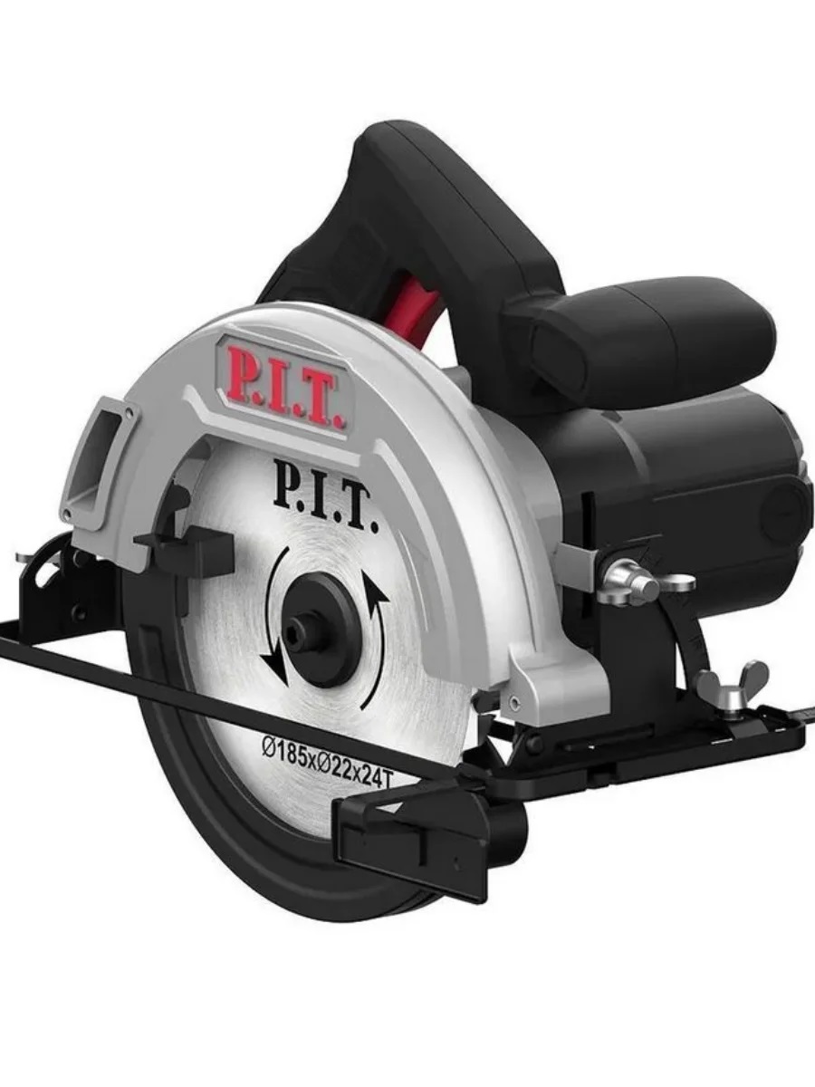 А мощность следующей модели от компании P.I.T. составляет 1200 Вт, пила работает со сменными кругами 185 мм, а без нагрузки двигатель способен раскрутить ротор до 5500 об\мин. Если выставить пилу на рез 90 градусов, то максимальная глубина пропила составит 60 мм.