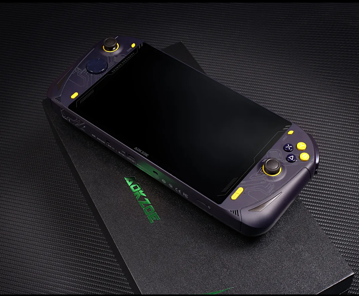 Aokzoe A1 представляет собой игровую консоль с 8-дюймовым дисплеем (1200p, 350 нит) и процессором AMD Ryzen 6800U. Модель предлагается в большом количестве конфигураций памяти, от 16 ГБ / 512 ГБ до 32 ГБ / 2 ТБ. Внутри установлен твердотельный накопитель стандартного форм-фактора M.2 2280, что облегчает возможный апгрейд. Также расширить память можно с помощью SD-карты.
