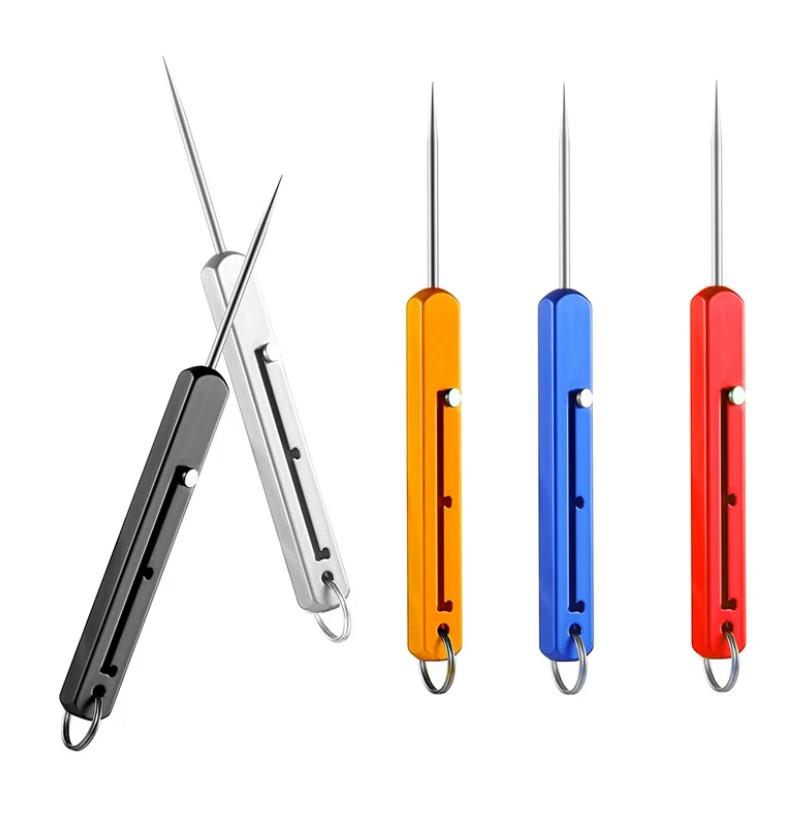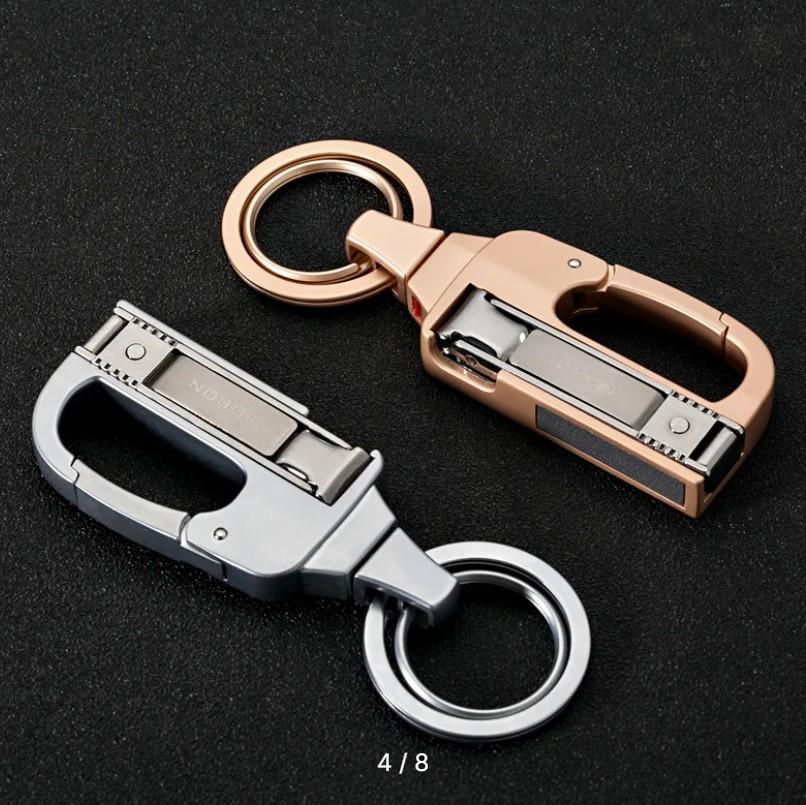Заявляется, что брелок изготовлен. Из титанового сплава. Брелок продается в пяти цветах. Длина изделия в разложенном состоянии составляет 10,2 см, а длина выдвижной части 4,2 см.