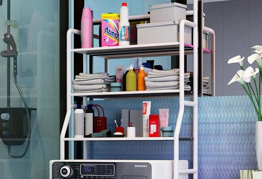 Полочки в составе стеллажа над унитазом или стиральной машиной