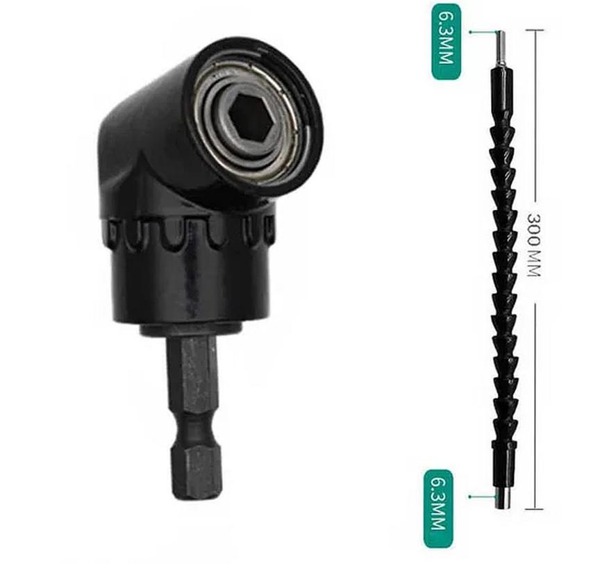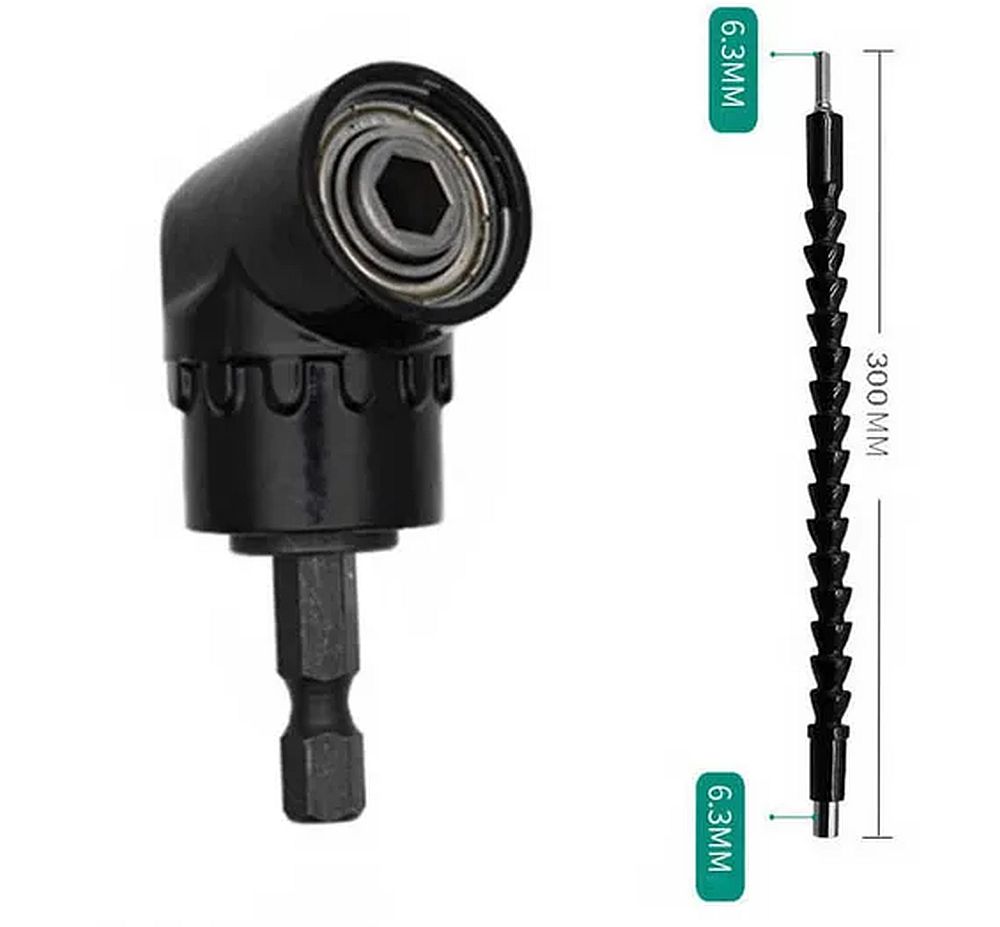 Многие скажут, что при сверлении отверстий угловой адаптер не нужен. Категорически не соглашусь, так как лично оценил его использование когда собирал решетку-орнамент из достаточно узких деревянных брусков и приходилось выполнить более 100 засверловочных отверстий по крепеж в узком пространстве между деталями. Без подобного приспособления выполнить работу бывает невозможно. От подойдет как для сверл с шестигранным хвостовиком, так и для обычных бит для закручивания крепежа.