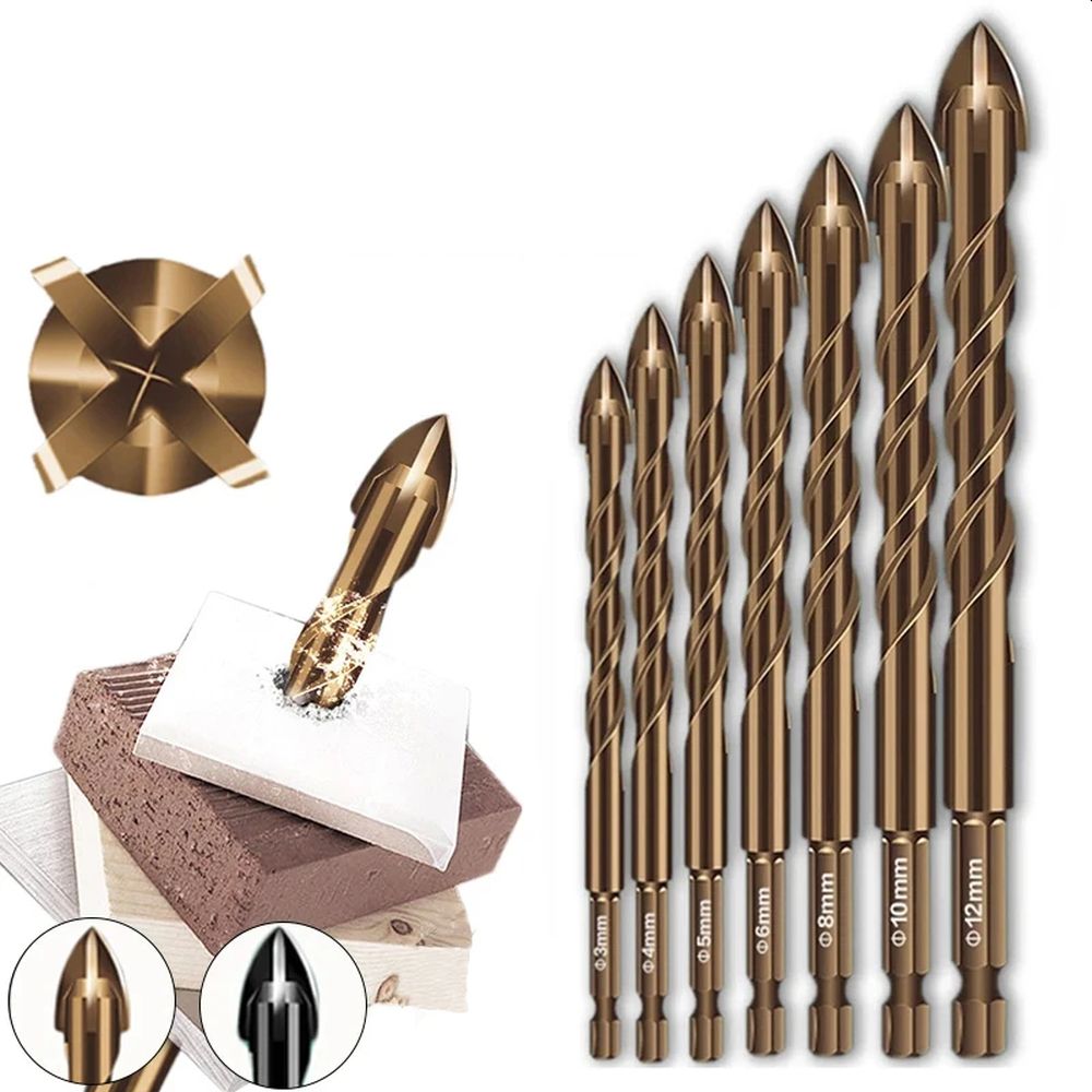 Популярный вариант сверл с необычной конфигурацией режущей части, которая состоит не из двух кромок, как у обычных сверл по керамике, а из четырех. Однако, отзывы, по большей части положительные. Сверла отлично подойдут для выполнения аккуратных отверстий в камне, керамической плитке или стекле, а также пластике. Хотя в отзывах пишут, что хорошо сверлят и металлы. На выбор восемь вариантов диаметра: от 4 до 12мм.