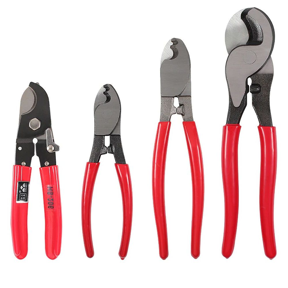 Отдельно стоит выделить кусачки для кабеля, которые позволят подготовить его нужную длину для работы или подравнять отдельные старые или поврежденные провода, выступающие из оплетки, до одинаковой длины. Для выполнения подобных действий удобны именно специализированные кабельные кусачки с закругленными кромками, адаптированными обрезки кабеля. На странице товара несколько вариантов такого инструмента для работы с кабелем разного диаметра от 25 до 70кв.мм. Позволяют обрезать как как целиком кабель, так и его отдельные проводники.