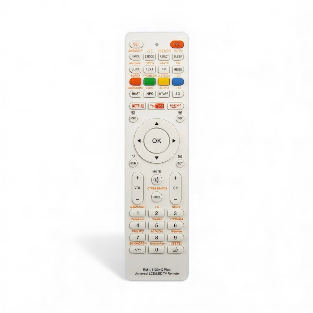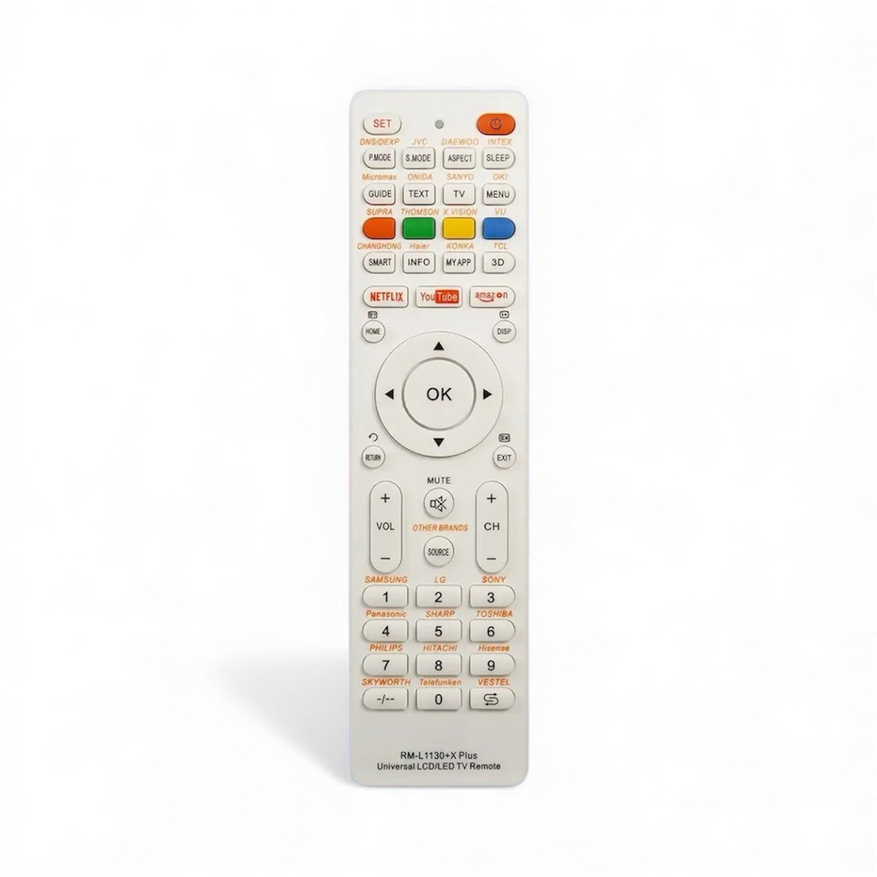 Универсальный ИК-пульт, который рассчитан на замену моделей RM-L113, RM-L1130+8 и других совместимых вариаций. Он уже настроен под большое количество телевизоров, поэтому дополнительных конфигураций не требует: вставил батарейки и пользуешься. На корпусе нанесены маркировки разных брендов, переключение происходит через кнопки выбора производителя. Размер компактный, корпус светлый, упор на базовые функции: включение, громкость, каналы, меню, быстрые клавиши под сервисы. Если сравнить его с предыдущим CHUNGHOP RM-991, то отличие заметно сразу. CHUNGHOP — это обучаемый пульт 6-в-1, который умеет копировать команды, хранит макросы, объединяет громкость и работает сразу с несколькими устройствами. RM-L1130+X не обучаемый: он просто содержит предустановленные коды и предназначен только для телевизоров.