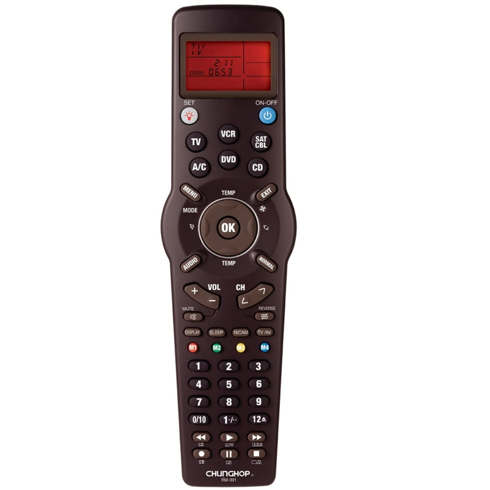 Обучаемый универсальный пульт, который может копировать команды с любых обычных ИК-пультов. Внутри стоит чип с памятью на 42 кнопки, поэтому он подходит не только для телевизора, но и для приставок, DVD, аудиосистем и других устройств, где управление идет по инфракрасному каналу. Работает только через ИК, упаковки нет, для настройки нужен оригинальный рабочий пульт, с которого считываются команды. Ограничение одно: сложные протоколы, вроде кондиционеров, он не берет.