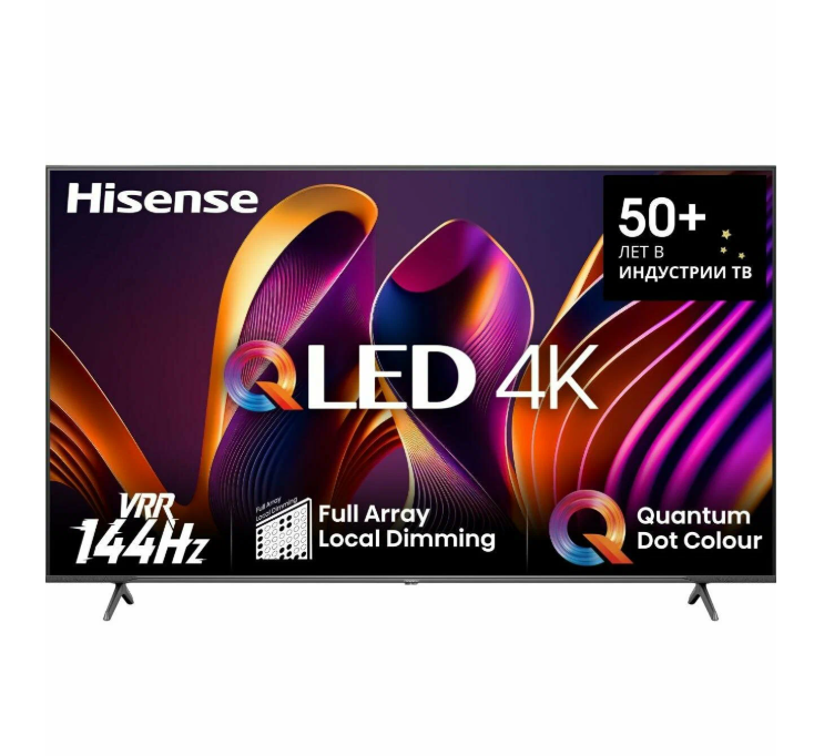 Hisense 55E7NQ PRO — это 55-дюймовый телевизор с разрешением 4K и частотой обновления 144 Гц. Экран построен на матрице VA с технологией QLED и прямой подсветкой, что снижает засветы по краям.