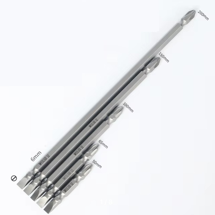 Я предлагаю длинный вариант биты с двумя рабочими зонами: со стандартным шлицевым и крестовым PH2 наконечниками. Длина данной биты составляет 200 миллиметров, её я бы и рекомендовал приобрести. Но у продавца ещё есть биты длиной 50, 65, 100 и 150 мм. При желании их все можно купить одним лотом.