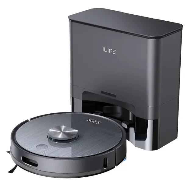 Робот-пылесос от iLife с обновленной системой LDS-навигации и док-станцией для самоочистки. Обладает приличной мощностью всасывания в 3000 Па, что позволяет устройству успешно убирать не только паркет/ламинат, но и ковровые покрытия. Автономность работы при полном заряде аккумулятора составляет до 150 минут. Пылесос поддерживает голосовых ассистентов Alexa/Google. Благодаря наличию док-станции пылесос можно не чистить в течение 60 дней.
