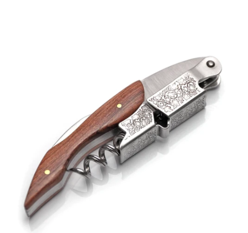 Червяк (винт) легко вставляется в пробку, а двойной рычаг обеспечивает равномерное извлечение пробки с минимальными усилиями. Зубчатое лезвие используется для аккуратного снятия фольги с горлышка бутылки. Конструкция рассчитана на работу с винтажными и современными винами.