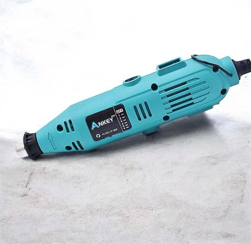 Инструмент для домашних DIY-задач. Питание от сети через адаптер, рабочее напряжение 10,8 В. Вес около 250 граммов. Мощность заявлена 130 Вт, скорость вращения до 16 000 об/мин, с регулировкой по 5 режимам. Максимальный диаметр сверления до 3,2 мм. Предусмотрены цанги разных размеров от 0,8 до 3,2 мм. Инструмент подходит для шлифовки, резки, зачистки, гравировки, полировки и сверления мягких материалов. Аккумулятор заявлен в комплекте, но работа осуществляется только при подключении к сети. Поставляется в вариантах комплектации с 12, 28 или 105 насадками. JANGKLIFE заметно компактнее и легче ANKEYPRO WSL-DM-11, ориентирована на аккуратные и малонагруженные работы. ANKEYPRO — более мощный сетевой инструмент на 180 Вт с высокими оборотами до 37 000 об/мин и бесщеточным двигателем, рассчитанный на широкий спектр задач и регулярное использование.