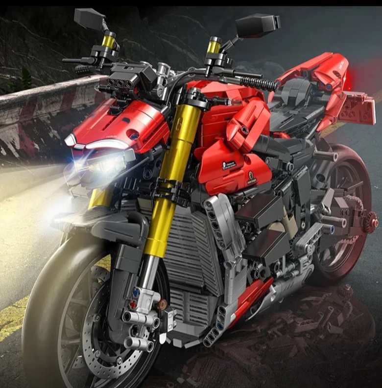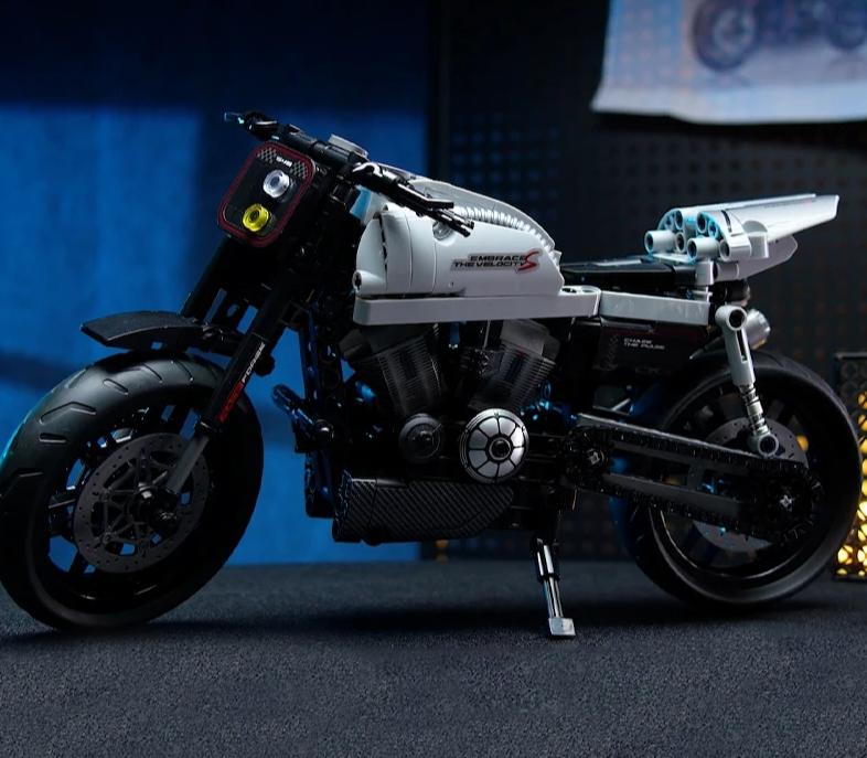 Далее в подборке набор, состоящий из 426 деталей из АБС-пластика и позволяющий построить точную модель мотоцикла.