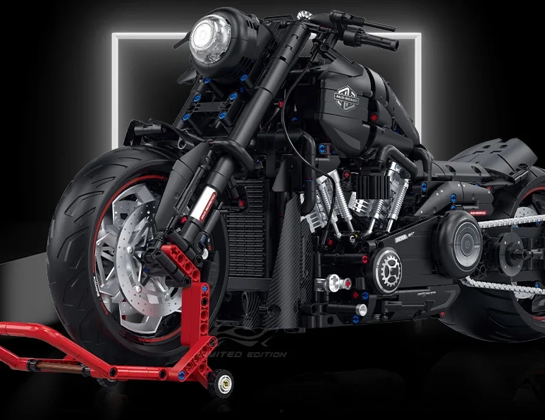 С помощью этого набора можно собирать модель в стиле Harley-Davidson XR1200. Около 850 деталей для сборки V-образного двухцилиндрового двигателя с воздушным охлаждением, широких шин и высокой рулевой колонки.