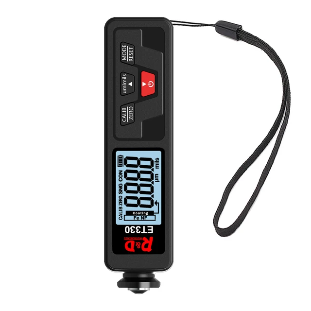 Цифровой толщиномер для измерения лакокрасочного покрытия по стали и цветным металлам. Работает по двум принципам — электромагнитная индукция для Fe и вихретоковый метод для NF, автоматически определяя тип основания. Диапазон измерения 0-1500 мкм, разрешение 0,1 мкм, точность +/-(3% +2 мкм). Оснащен ЖК-экраном с подсветкой, доступен в красном или черном корпусе, при этом светлый экран отображает черные цифры, темный — зеленые. Поддерживает нулевую и многоточечную калибровку, питается от двух батареек AAA, которые в комплект не входят. Подходит для неразрушающего контроля окраски в автоподборе, сервисе и производстве.