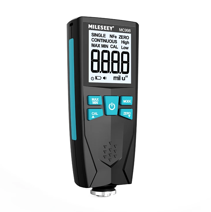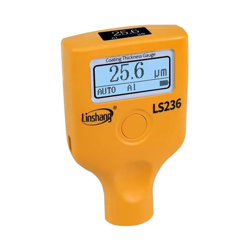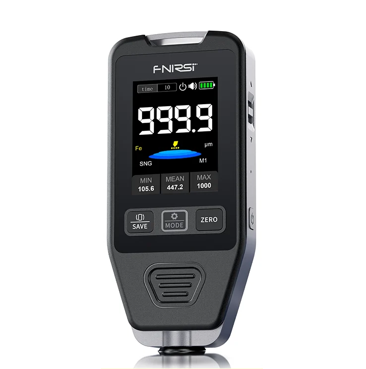 С диапазоном измерения 0-1400 мкм и точностью +/-(3% +2 мкм). Прибор автоматически определяет тип основания и измеряет немагнитное покрытие на стали и железе по принципу электромагнитной индукции, а также покрытие на алюминии и других немагнитных металлах по вихретоковому методу. Разрешение составляет 0,1 мкм, поддерживаются единицы мкм и mil, реализованы нулевая и многоточечная калибровка. Минимальный диаметр измеряемой зоны 20 мм, допустимый радиус кривизны 5 мм для выпуклой и 25 мм для вогнутой поверхности. Модель оснащена встроенным литиевым аккумулятором 600 мАч с зарядкой, функцией автоотключения, поддержкой хранения данных и тестом на наличие металлической шпатлевки. Экран поворотный для удобства считывания показаний под разными углами. Рабочий температурный диапазон от -10 до +50 C, габариты корпуса — около 115 х 48 х 18 мм, вес примерно 83 г. Прибор рассчитан на неразрушающий контроль лакокрасочного и гальванического покрытия в автоподборе и технической диагностике.
