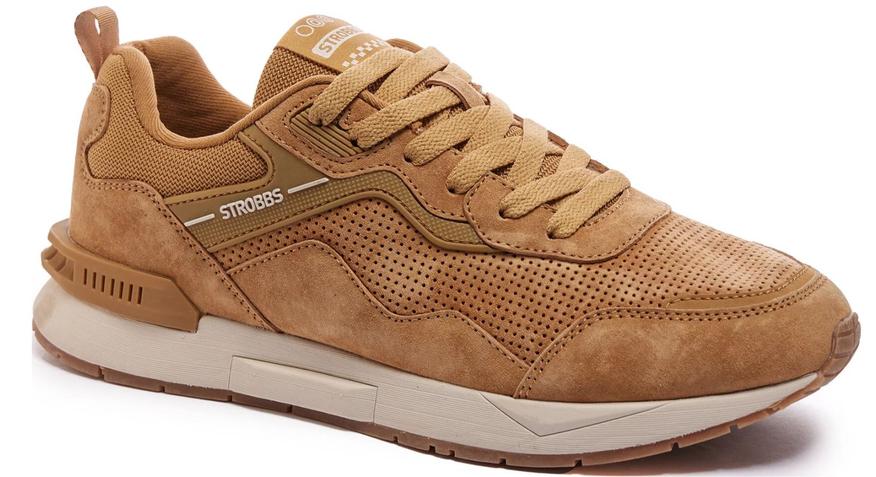 Кроссовки от российского бренда Strobbs — отличный выбор для повседневной носки. Они сделаны из натуральной замши и имеют плотную шнуровку для регулировки посадки и фиксации стопы. В области пятки есть вставки из текстиля, которые не вызывают дискомфорта даже при долгой носке. Внутри анатомическая стелька, которая обеспечивает дополнительную устойчивость ноги и хорошо подстраивается под любое положение стопы. Кроме того, комбинированная подошва немного пружинит во время ходьбы.