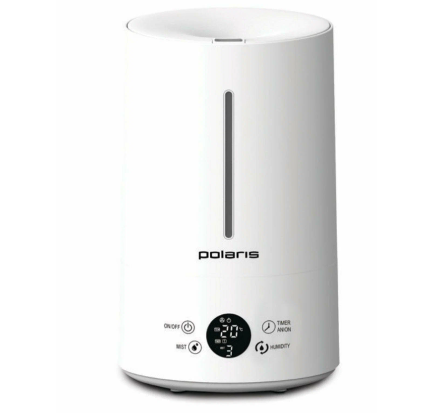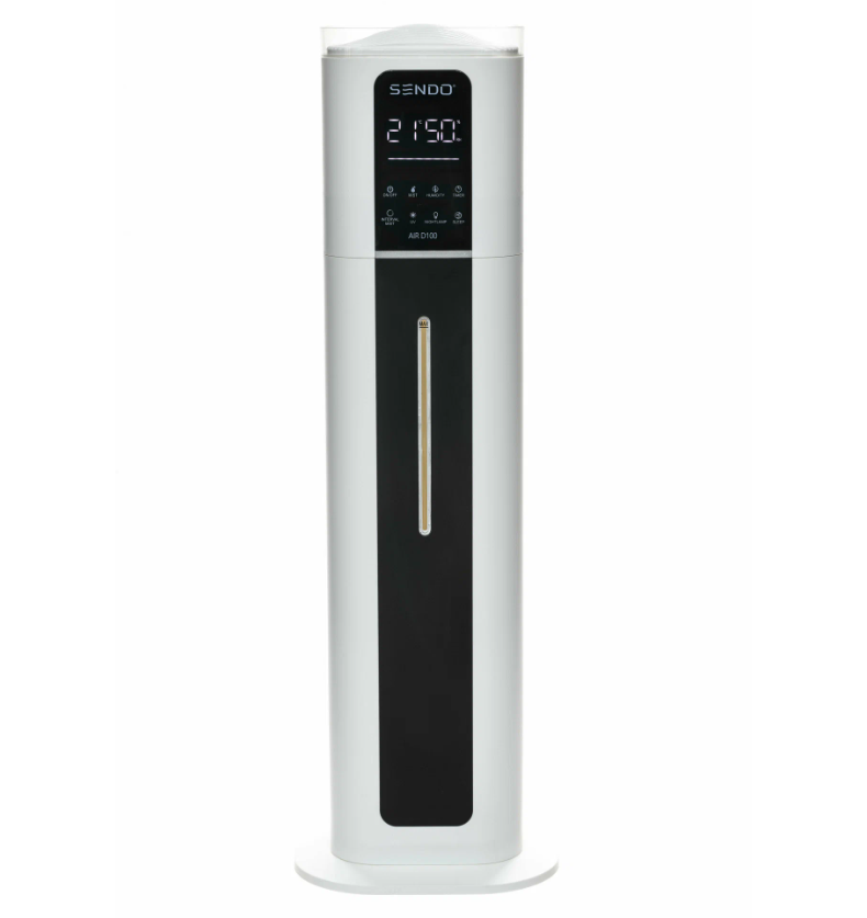 В ночном режиме прибор работает бесшумно и гасит лишние индикаторы. Мягкий ночник создаёт приглушённое свечение, а ароматизатор позволяет накапать эфирные масла. Размеры модели — 20,1 на 24,1 на 75,5 см.