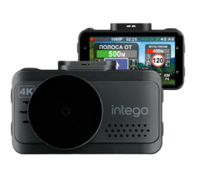 Пишет видео в настоящем 4K и при этом отслеживает участки с контролем скорости через встроенный GPS. При необходимости к нему подключается задняя камера — устанавливается отдельно и дополняет обзор.