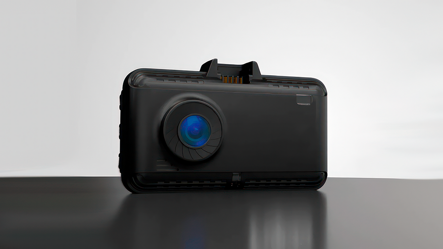 Видеорегистратор с сигнатурным РД на магнитном креплении. Питание поступает прямо в кронштейн, что облегчает взаимодействие с самим регистратором.