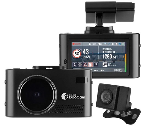 Daocam Combo — видеорегистратор обычной конструкции с двумя камерами (вторая камера выносная). Видео пишет в Full HD.