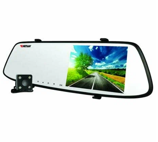В правой части находится цветной экран на 4,5 дюйма. Посмотреть изображение с камер удобно вполне. Когда дисплей гаснет, устройство продолжает выполнять роль обычного зеркала.