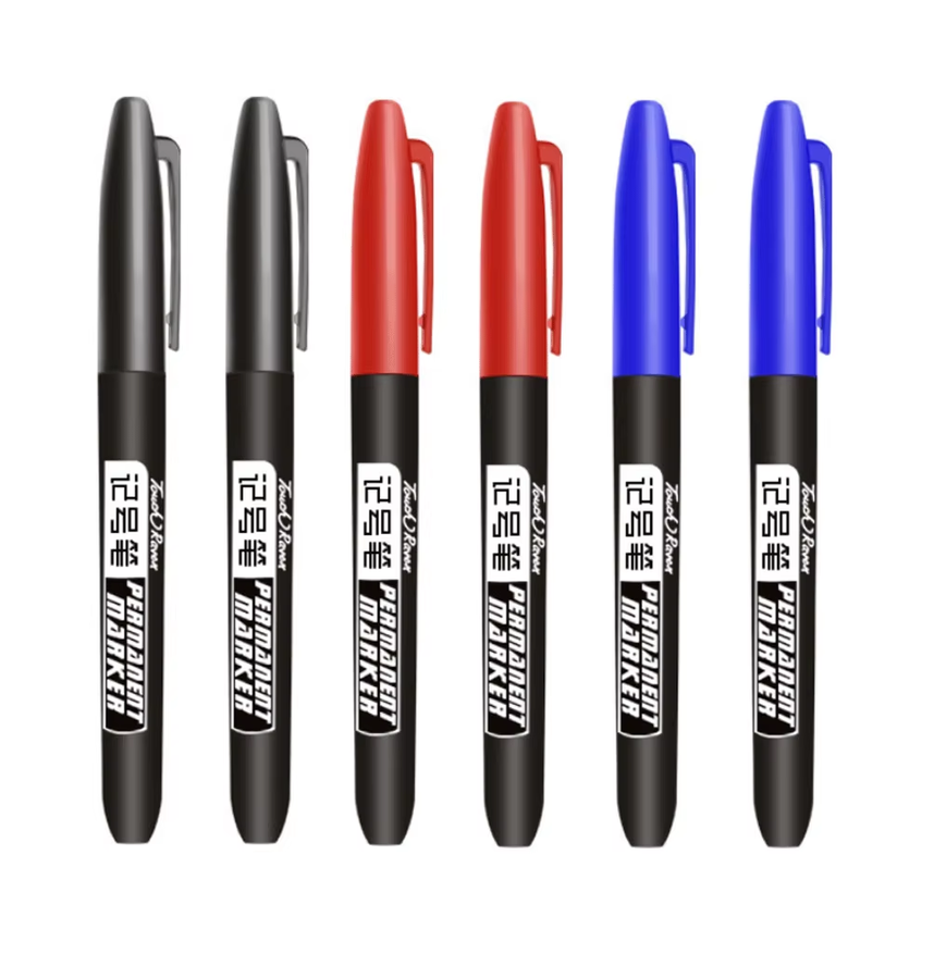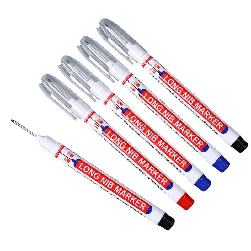 Набор из 6 масляных водонепроницаемых маркеров с перманентными чернилами. Цвета: черный, синий, красный, зеленый, белый. Толщина письма — 0,7-1 мм, наконечник круглый. Не поддерживают двухстороннее письмо. Чернила быстро сохнут, устойчивы к воде. Подходят для маркировки мебели, полок, деталей при производстве, а также для разметки отверстий под лампы.