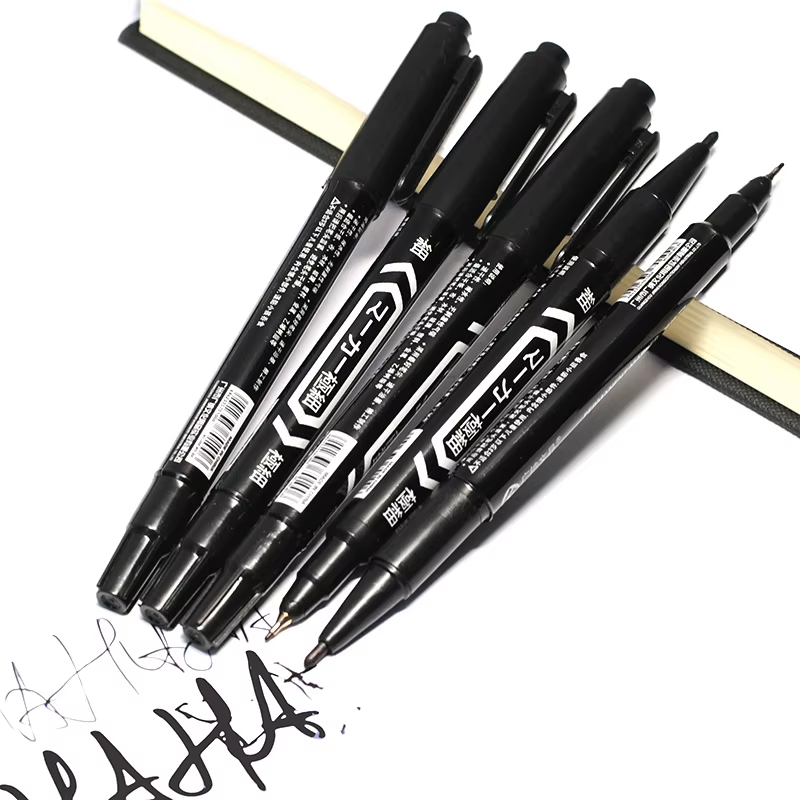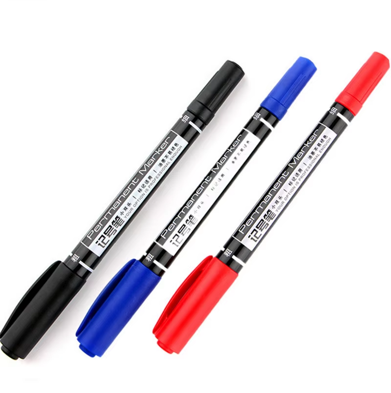 Масляный водонепроницаемый маркер You Ping с двойным наконечником толщиной 0,5 и 1,0 мм. Предназначен для нанесения стойкой маркировки на различные поверхности. Имеет два пишущих узла с округлым наконечником. Доступен в трёх цветах: черный, синий, красный. Длина корпуса — 14 см. Чернила перманентные, не смываются водой. Подходит для письма по стеклу, пластику, металлу, дереву и другим материалам.