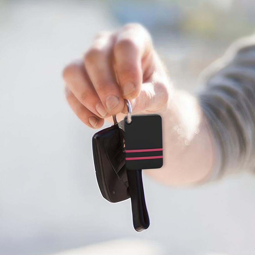 На первый взгляд может показаться, что прямоугольная форма маячка менее удобна для брелка. Однако такая форма открывает новые возможности: теперь вы можете не только подвесить трекер, но и приклеить его. Например, на чехол смартфона или обложку ежедневника. Цена у этого комплекта чуть ниже, чем у предыдущего, но всё ещё остаётся высокой.