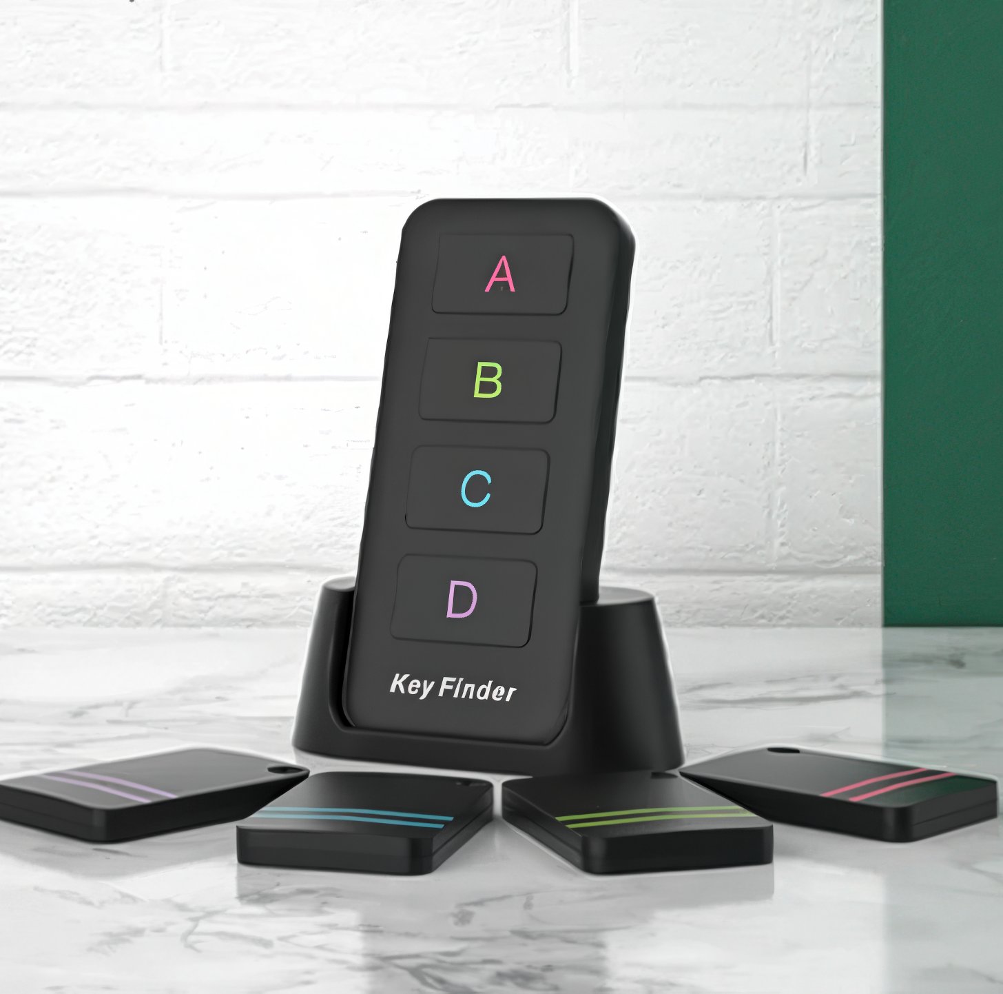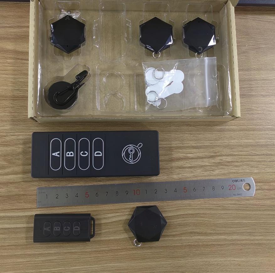 Если вы ищете более продвинутое решение, обратите внимание на комплект трекеров с пультом управления. Этот набор включает в себя четыре трекера в форме граненой соты и два пульта — один основной и один запасной. Такая конфигурация позволяет держать под контролем сразу несколько важных предметов. Работает система просто: прикрепите трекеры к вещам, которые не хотите терять, а когда потребуется их найти, нажмите соответствующую кнопку на пульте. Активированный маячок издаст громкий звуковой сигнал, который легко приведёт вас к потерянному предмету. Форма сот не только элегантно выглядит, но и практична — такой трекер удобно крепить на связку ключей или брелок.