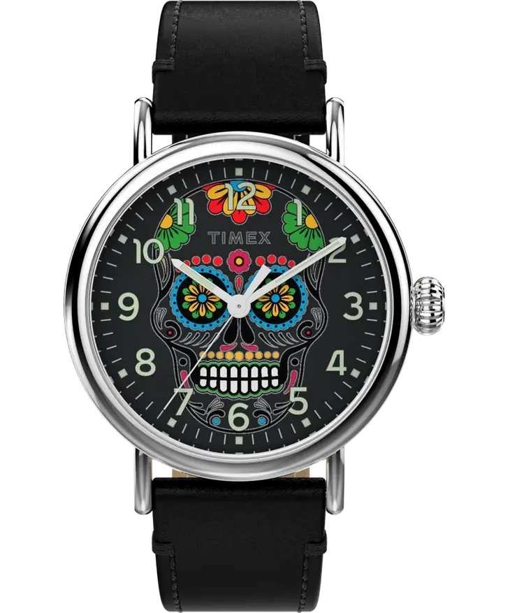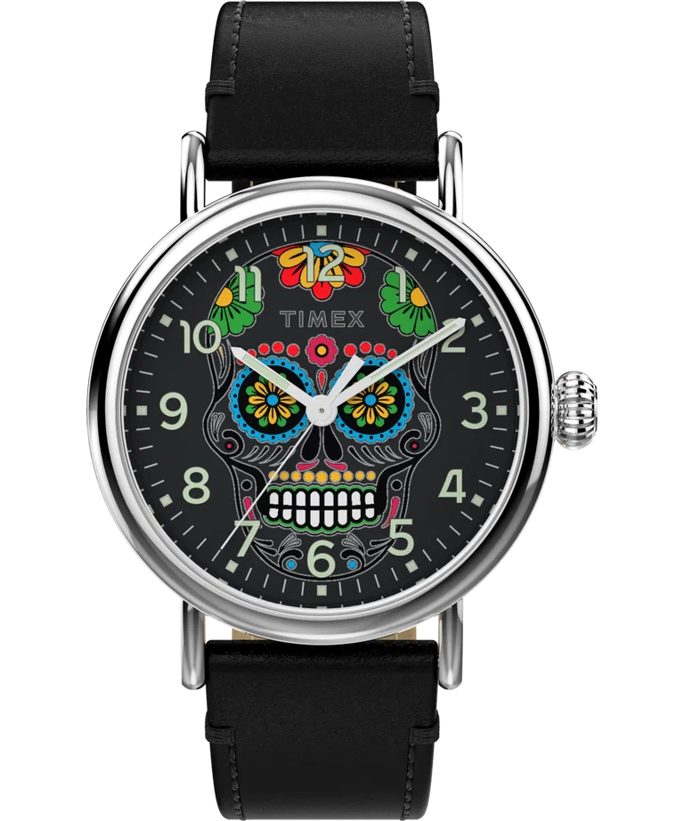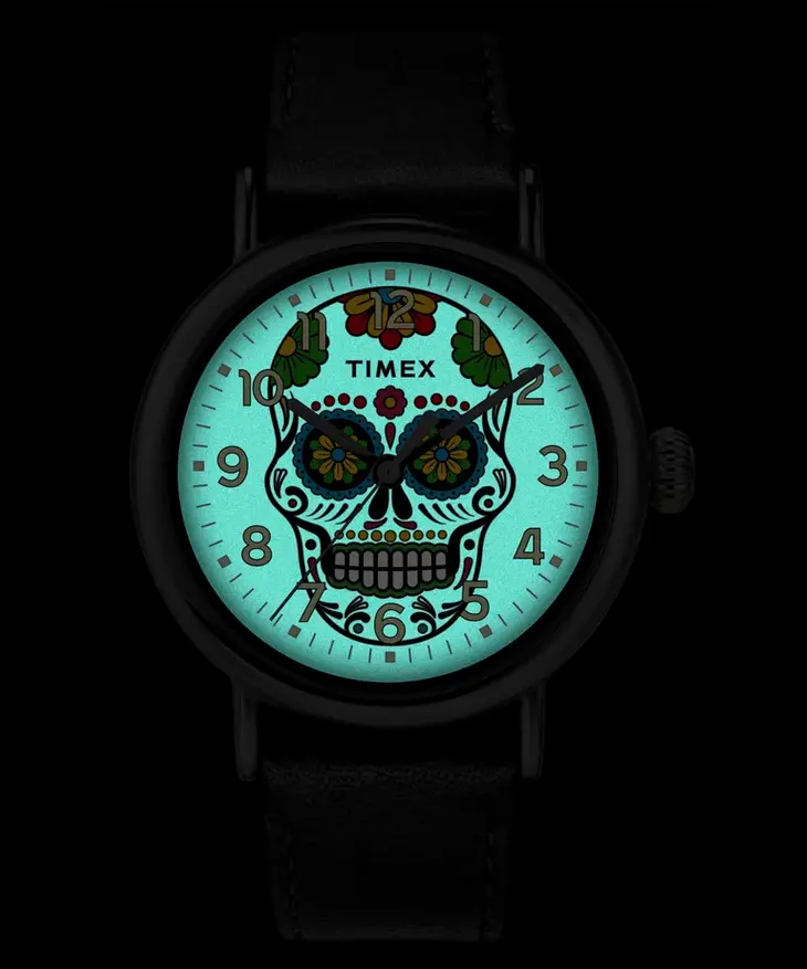 Особая тема, а то и «палочка-выручалочка» — это мексиканские мотивы. Одна из хороших интерпретаций — у Timex, потому что часы обладают еще и фирменной подсветкой Indiglo, что видно на первом фото в галерее.