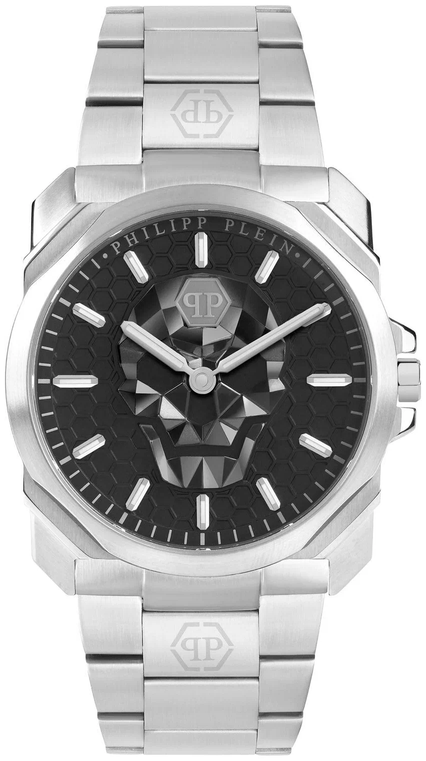 Корпуса моделей часов у Philipp Plein — это оммажи, и в нашем случае легко узнать черты часов Bvlgari. Корпус стальной, стекло часов — сапфировое.