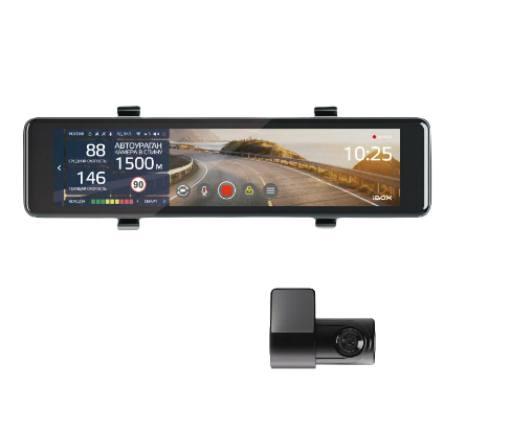Комбо-устройство представляет собой видеорегистратор плюс полноценный сигнатурный радар-детектор (РД). Комплектация с камерой заднего вида позволяет использовать устройство как парктроник. Дисплей диагональю 11,26 дюймов у зеркала сенсорный.