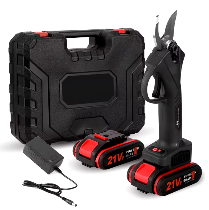 Электрический секатор позволяет обрезать ветки деревьев и кустарников без особых усилий.