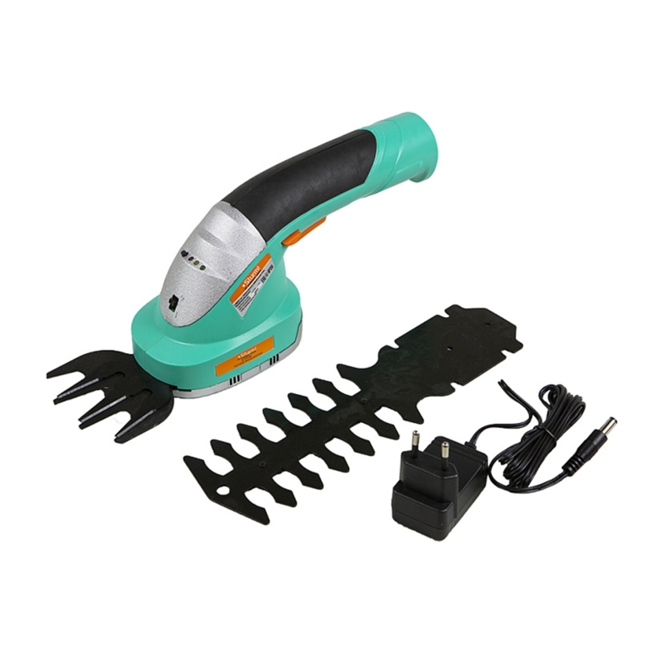 Компактный кусторез на базе литий-ионного аккумулятора 7,2 В с ёмкостью 1,5 А·ч. Предназначен для обрезки травы, формовки кроны и удаления старых ветвей. Частота вращения — до 1000 об/мин. В комплект входят две насадки: для работы с кустами и с травой. Есть защитные кожухи и индикатор заряда. Заявленный гарантийный срок — 14 месяцев.