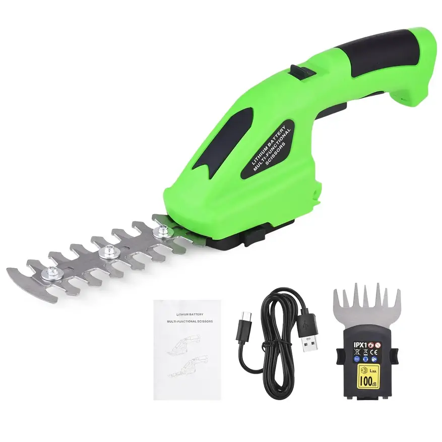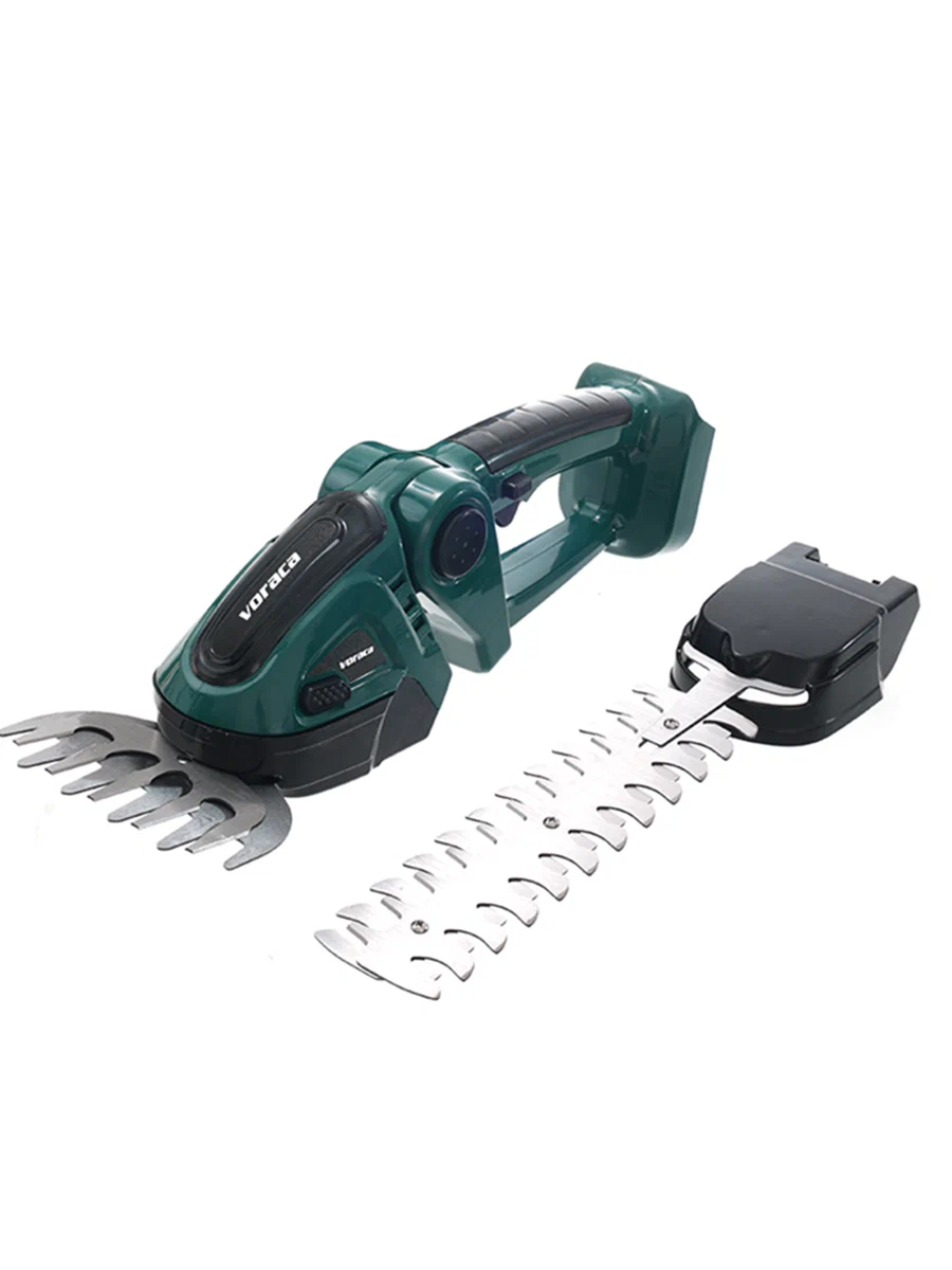 Комбинированный триммер, сочетающий функции кустореза и инструмента для стрижки газонов. Скорость вращения — до 20000 об/мин. Лезвия выполнены из стали SK5. Поворотная головка на 90° и сменные лезвия обеспечивают универсальность. Корпус изготовлен из ABS-пластика. Встроенный литиевый аккумулятор поддерживает автономную работу.