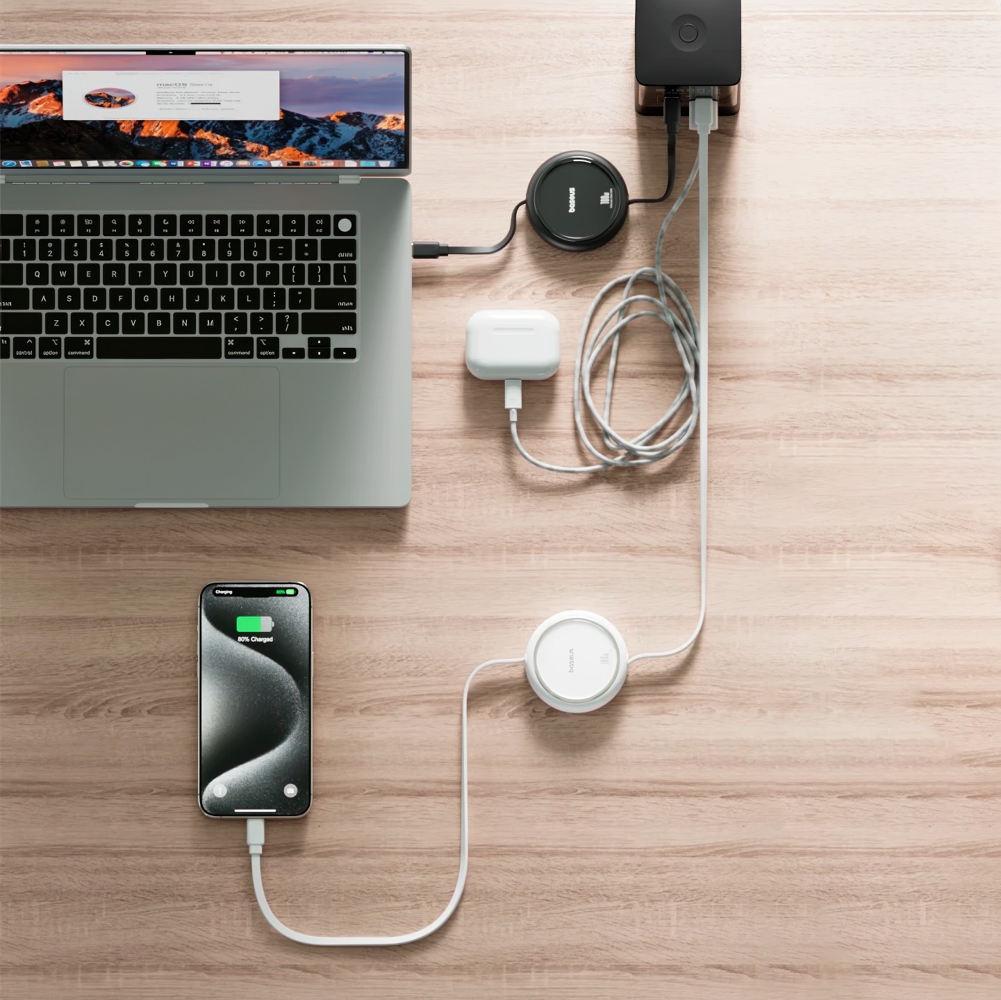 Когда речь заходит о надёжных мобильных аксессуарах, Baseus неизменно оказывается в числе первых претендентов. Их кабель-катушка — отличное тому подтверждение. Компактный корпус скрывает в себе от метра до двух качественного провода с поддержкой Power Delivery мощностью до 100 Вт — достаточно для подключения большинства современных ноутбуков.