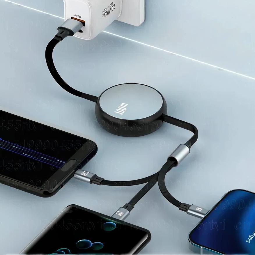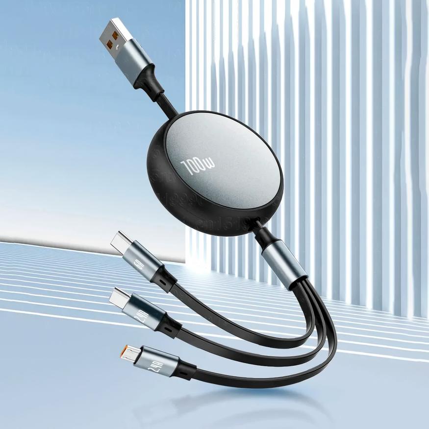Внешне эта модель почти неотличима от решения Baseus, включая схожую ценовую категорию и поддержку мощности до 100 Вт по USB-PD. Однако у неё есть козырь в рукаве — точнее, три козыря на конце кабеля: помимо современного USB Type-C присутствуют разъёмы Apple Lightning и классический Micro-USB.