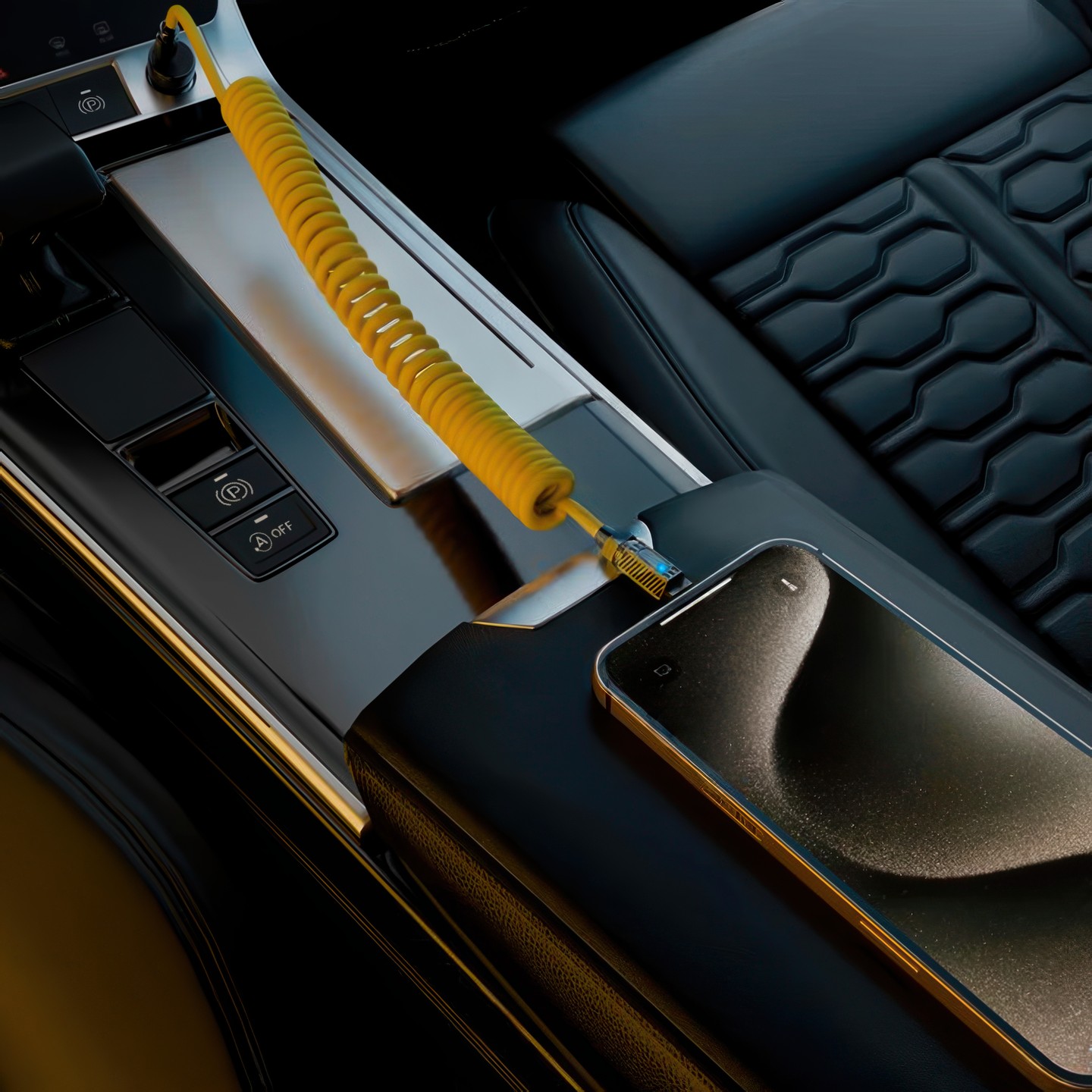 Вдохновлённый дизайном классических телефонных проводов, этот кабель представляет собой витую квазипружину, способную растягиваться до впечатляющих 180 сантиметров. В сжатом состоянии провод занимает около десяти сантиметров, что делает его идеальным для путешествий и ежедневного ношения.