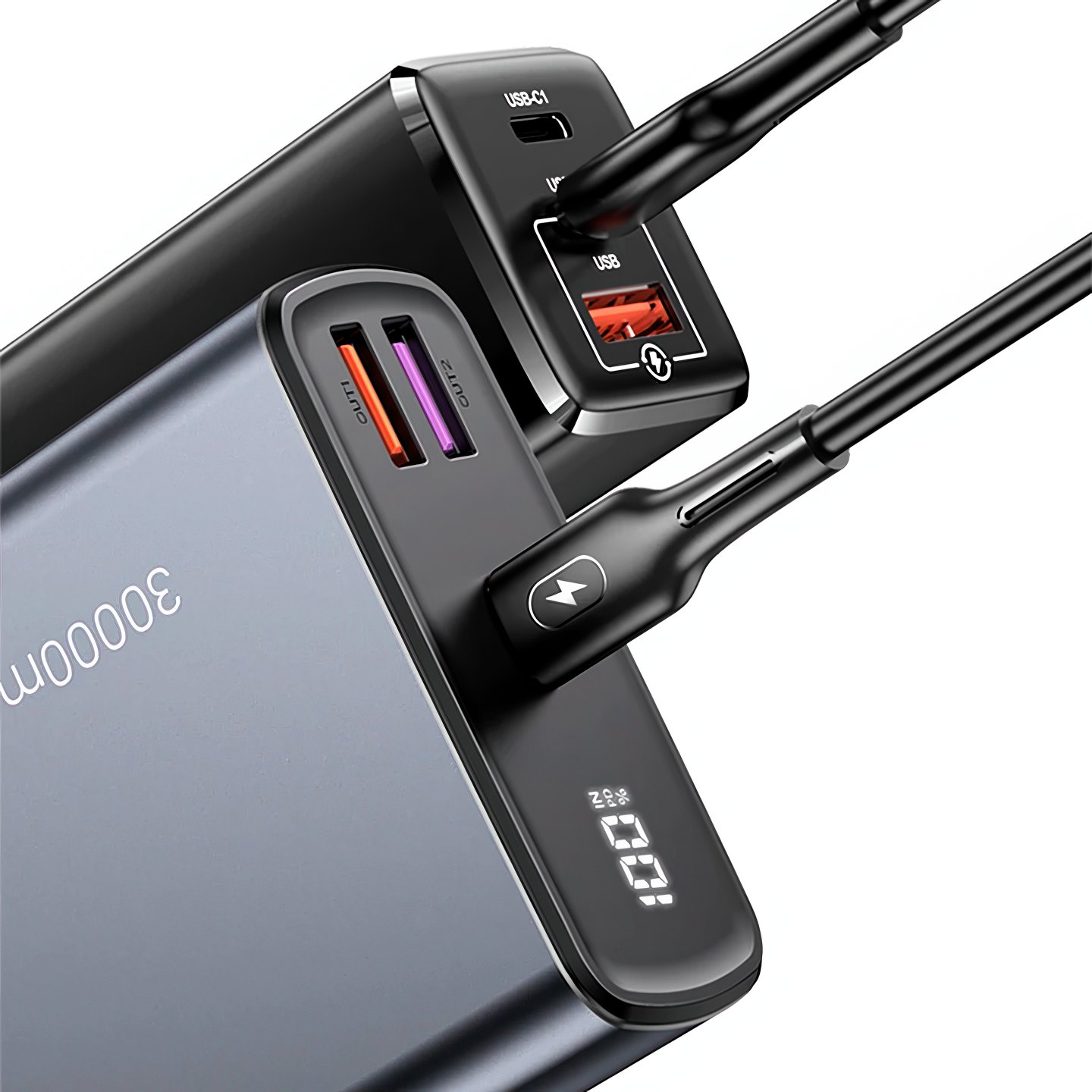 USAMS PB59 — настоящий титан среди компактных павербанков. С рекордной емкостью в 111 Вт•ч он способен обеспечить почти сутки автономной работы большинства ноутбуков. Однако за такую выдающуюся емкость приходится платить — вес этого павербанка составляет 610 граммов, что приближается к половине веса суперкомпактных ультрабуков.
