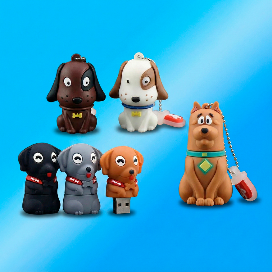 Было бы несправедливо уделить столько внимания кошкам и проигнорировать «собачников». В следующий набор вошли фигурки, посвященные лучшим друзьям человека. Коллекция включает в себя 8 моделей, представляющих различные породы и стилизации — от милых щенков с большими глазами до более серьезных псов. Все они выполнены в 3D-формате, где сама флешка аккуратно спрятана внутри корпуса. Чтобы добраться до USB-коннектора, обычно нужно снять голову фигурки, что превращает использование гаджета в своеобразную игру.